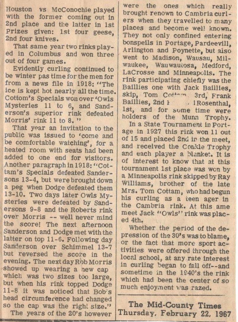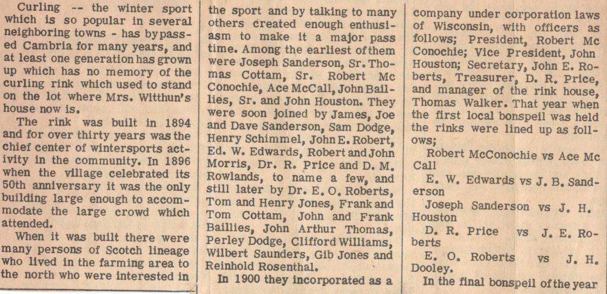 | Curling Once Popular Sport in Cambria |