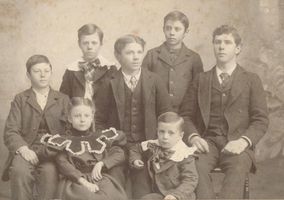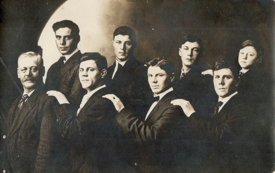| Back L-R, Josiah, John Jr. Middle L-R, Robert, Frank, Scott, Front L-R, Phebe, Morris | Front L-R, John Sr., Josiah, Frank, Scott. Back L-R, Jack, Robert, Morris, Roy. |