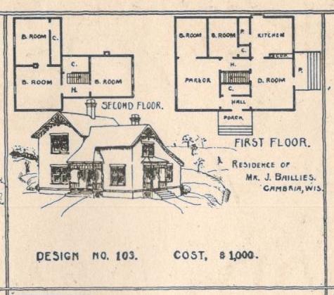 | C. H. Williams, Architect, Portage, Wisconsin, 1908. | John Hamilton Baillies house. | John Hamilton Baillies barn 1908. |