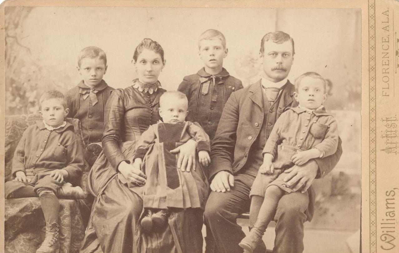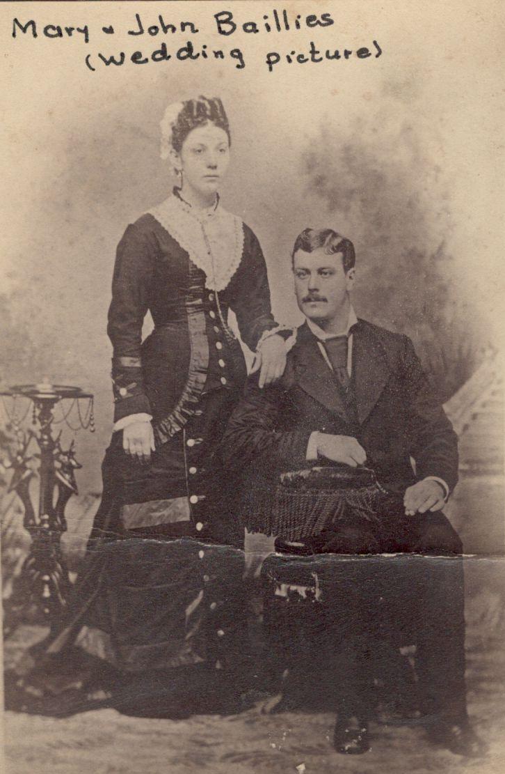 | Mary Williams and John Hamilton Baillies Wedding Picture | Mary and John Hamilton Baillies Family Portrait. Children Back L-R, Frank, Scott. Front L-R, Robert, Josiah, John Jr. | Frank and Scott Baillies |