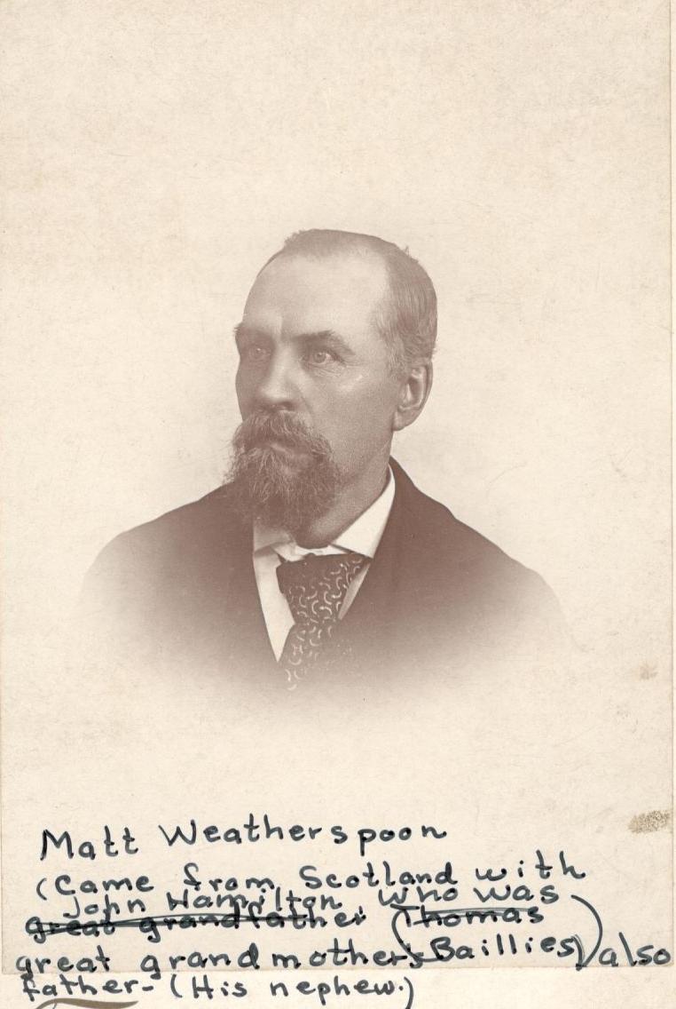 his first wife having died in 1833, and Thomas Baillies and wife and daughter Ann, and Matt and Jim Weatherspoon who